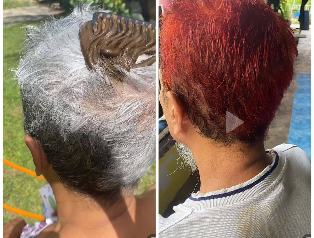 - Buka pek inai rambut dan tuangkan inai di atas kulit kepala.